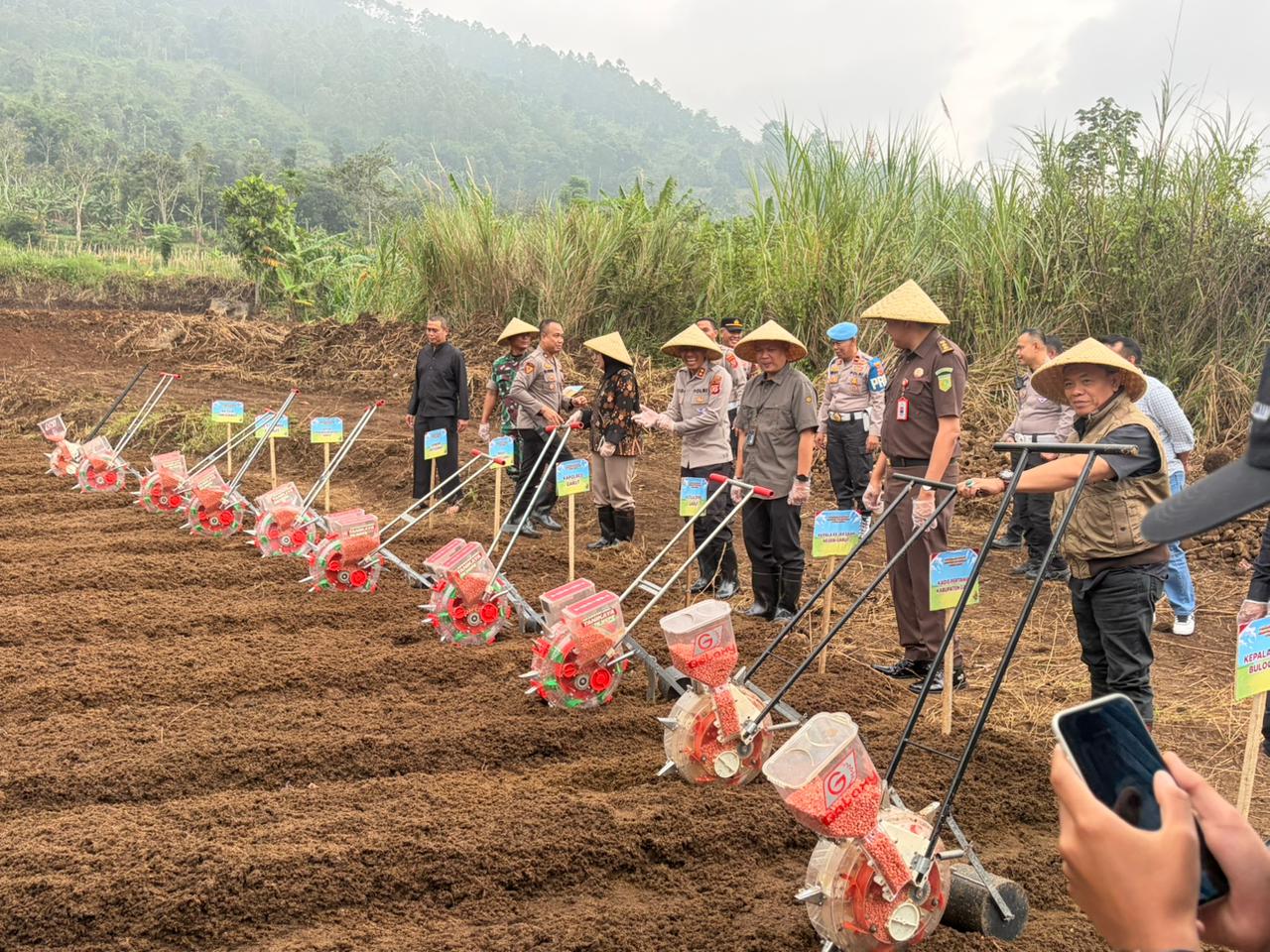 Penanaman ini merupakan bagian dari Program Penanaman Jagung Serentak seluas 750 hektare yang digagas Polda Jawa Barat sebagai wujud nyata dukungan terhadap ketahanan pangan nasional. Lahan yang telah dipersiapkan tampak siap tanam, mencerminkan sinergi antara aparat kepolisian, petani, dan pemangku kepentingan terkait.