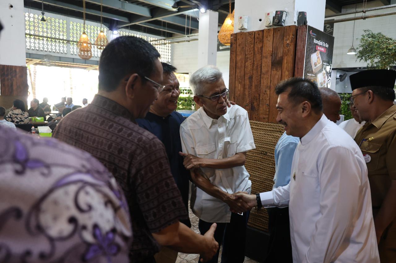 Wakil Wali Kota Bekasi Abdul Harris Bobihoe hadiri Halal bi Halal dengan Pensiunan Pemkot Bekasi. Kegiatan digelar di Bandar Jakarta, SMB Bekasi, Kota Bekasi.